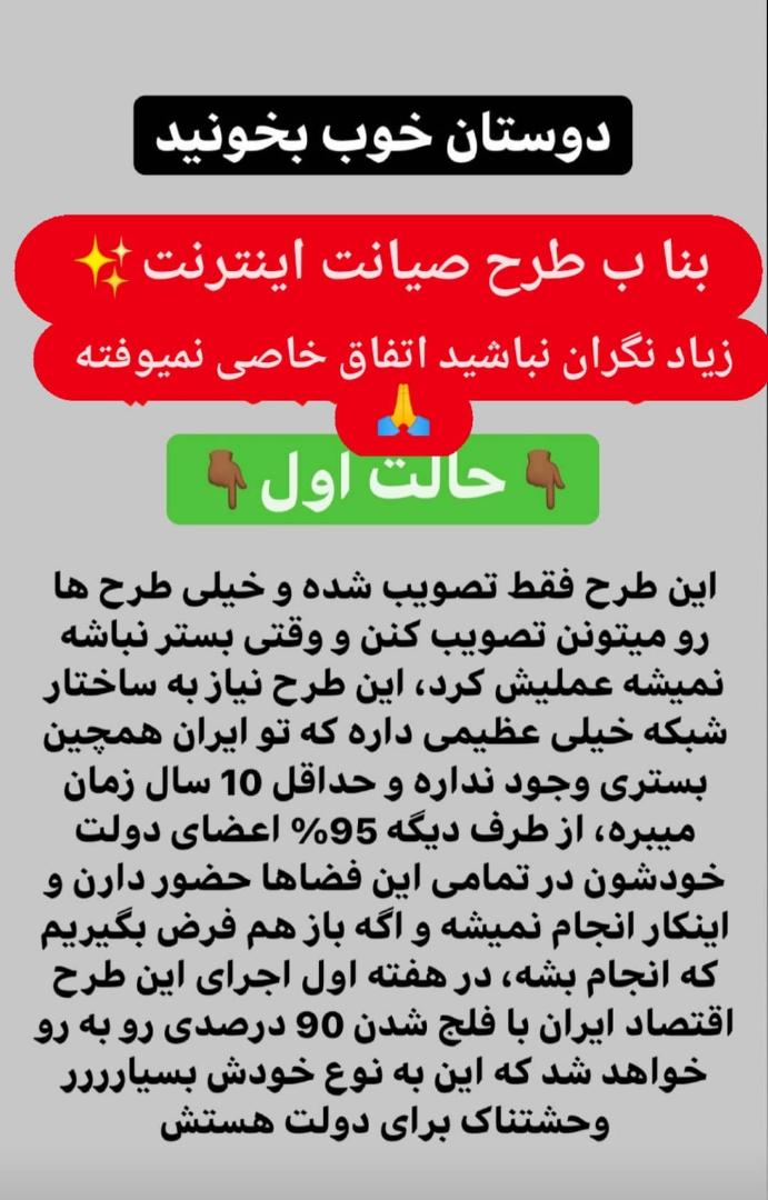 3. با داخلی کردن اینترنت صد در صد مردم ساکت نمیشینن و تظاهرات از چیزی که الان هست ۱۰۰ برابر بیشتر میشه. میخوان ۸۰ میلیون ادمو به تیر ببندن که شلوغ نکنن:/؟